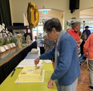Sr Maureen cutting the cake.